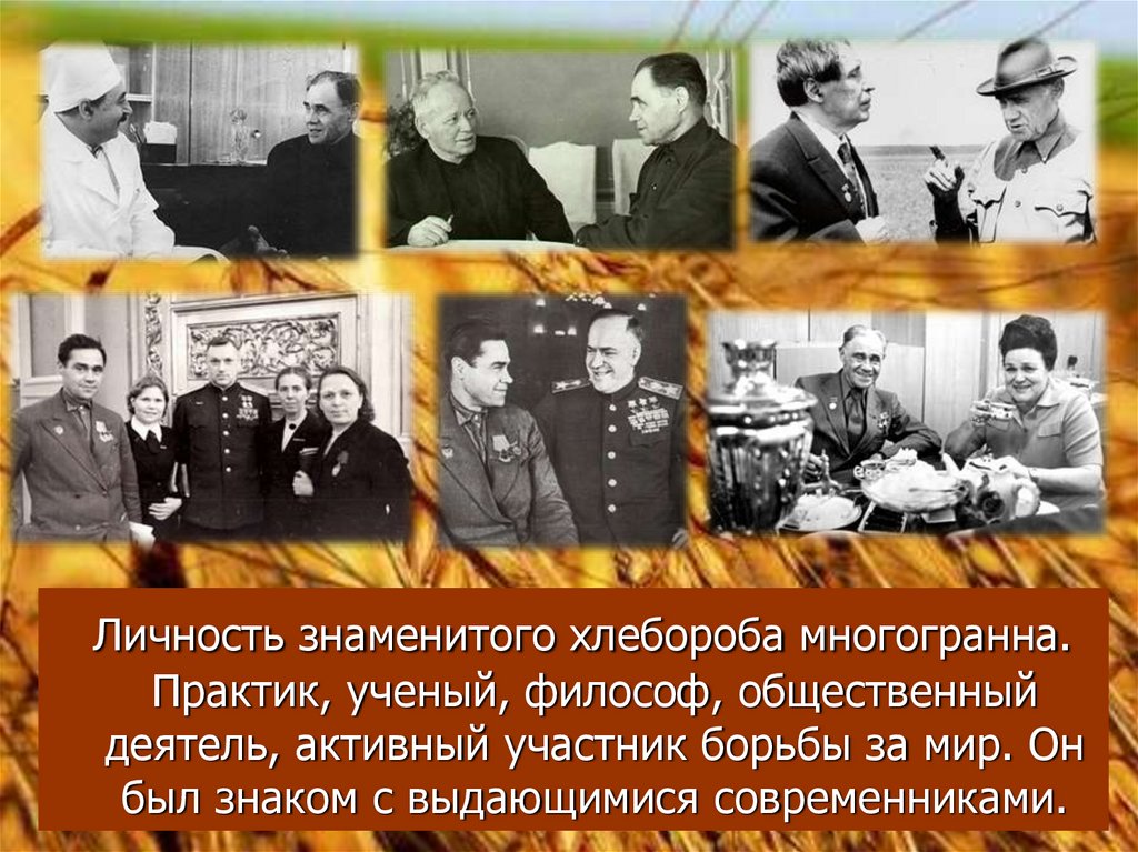 Личность знаменитого хлебороба многогранна.Практик, ученый, философ, общественный