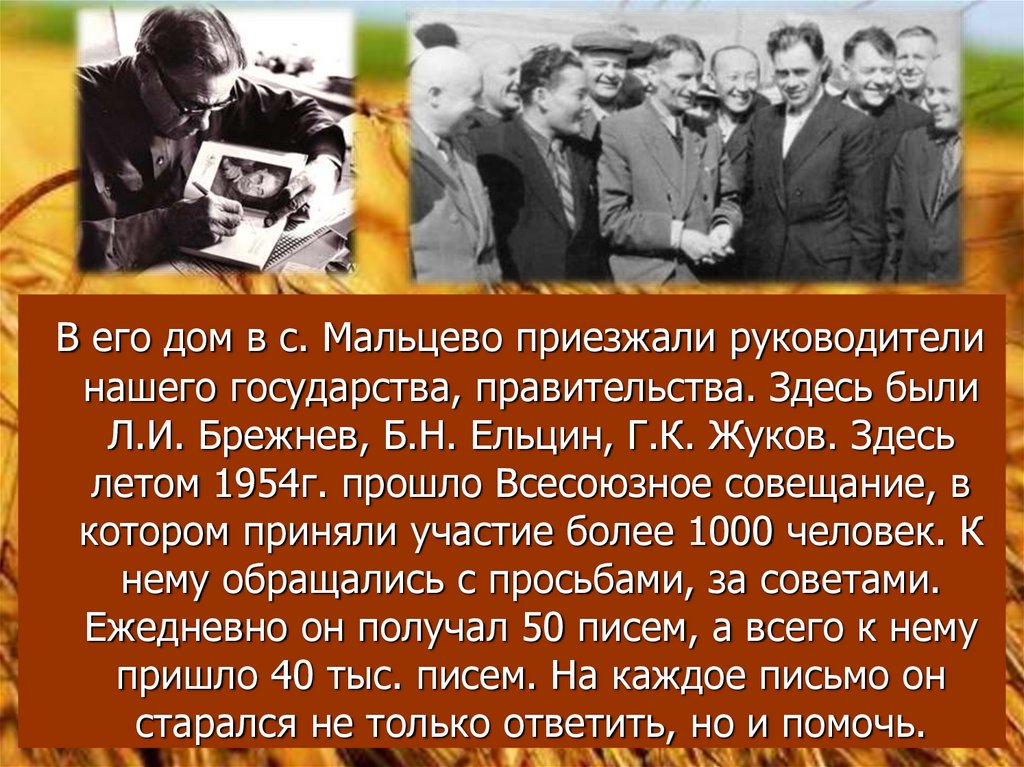 В его дом в с. Мальцево приезжали руководителинашего государства, правительства. Здесь были