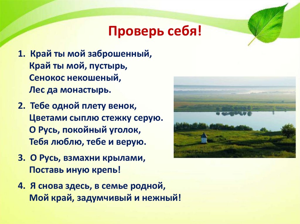 1. Гой ты, Русь, моя родная,Хаты — в ризах образа.
