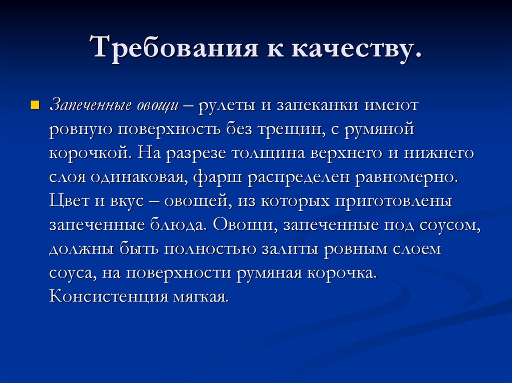 Требования к качеству.Запеченные овощи – рулеты и запеканки имеют
