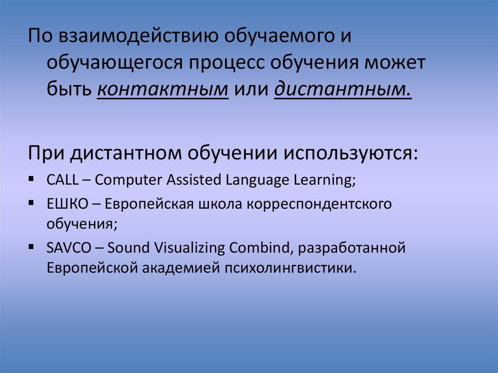 По взаимодействию обучаемого иобучающегося процесс обучения может