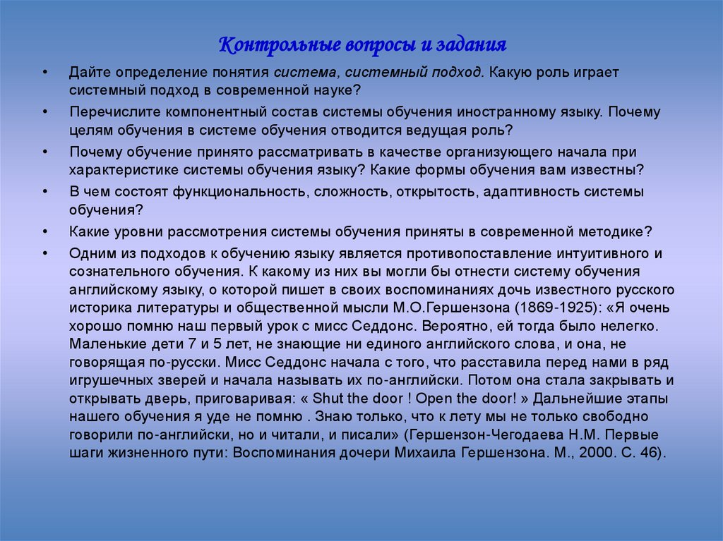 Контрольные вопросы и заданияДайте определение понятия система, системный подход. Какую роль играет