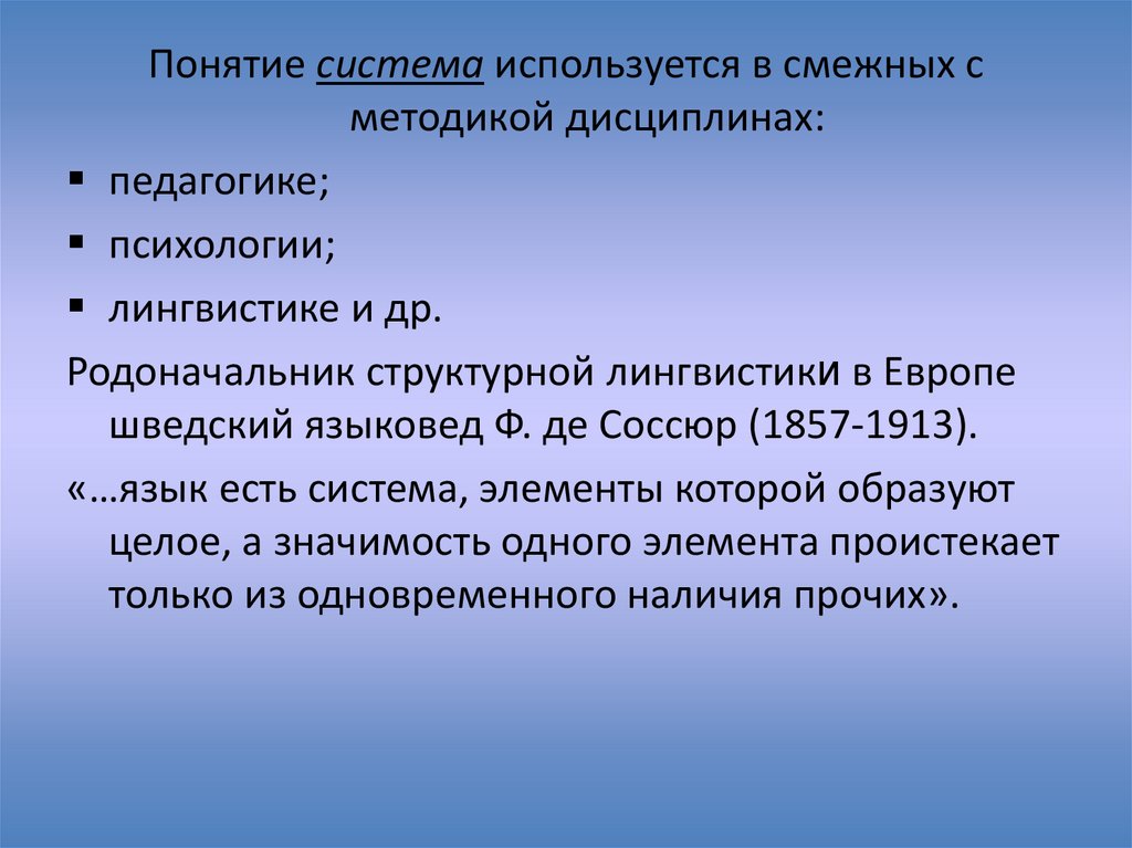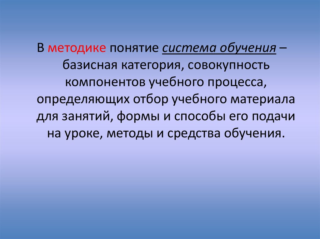 С позиции системного подхода в методикевыделяют компоненты системы обучения: