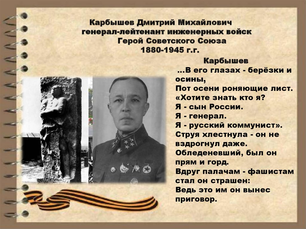 Карбышев Дмитрий Михайловичгенерал-лейтенант инженерных войск