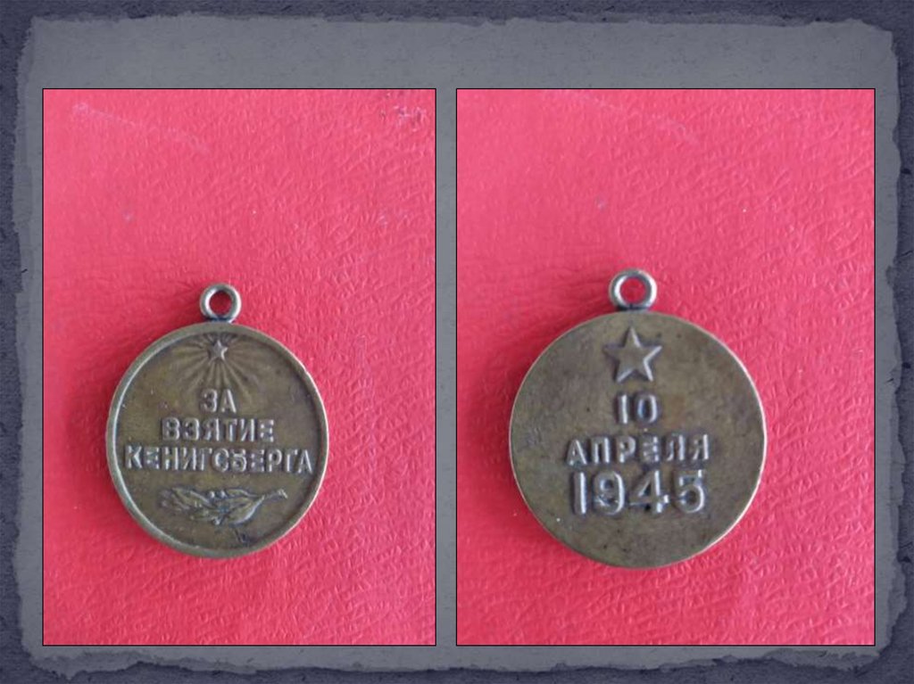 медалей „За взятие Будапешта“, „За взятиеКёнигсберга“, „За взятие Вены“ и „За взятие Берлина“».