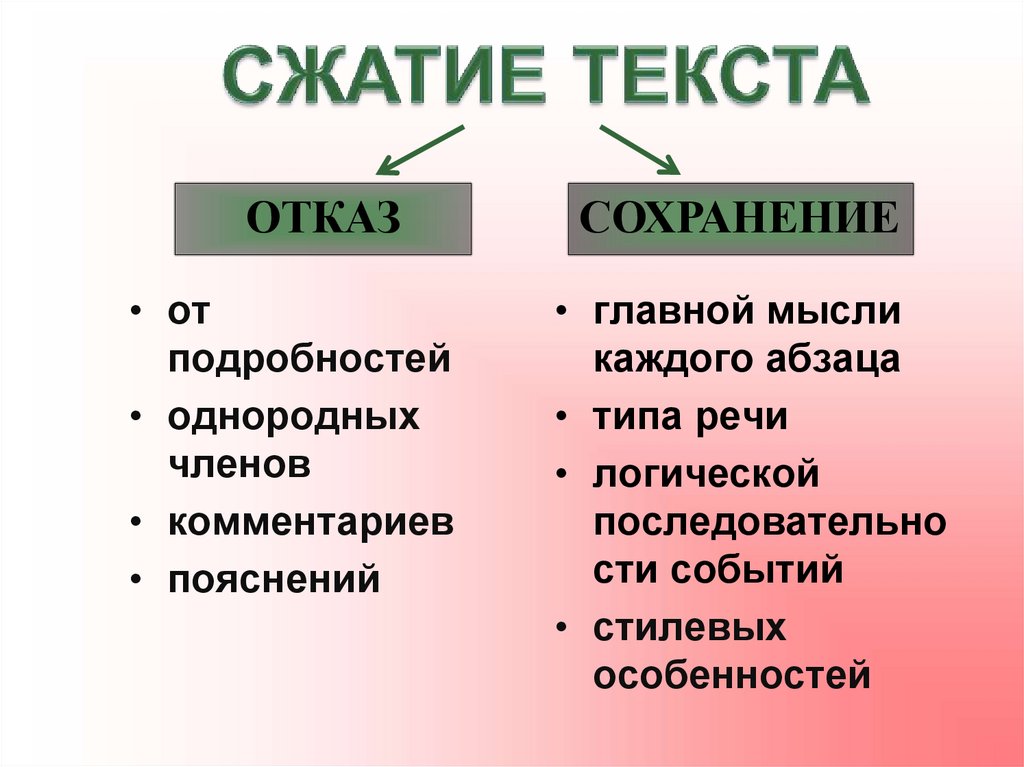 Подготовка к пробному экзамену. Приёмы сжатия текста. Структура сочинения