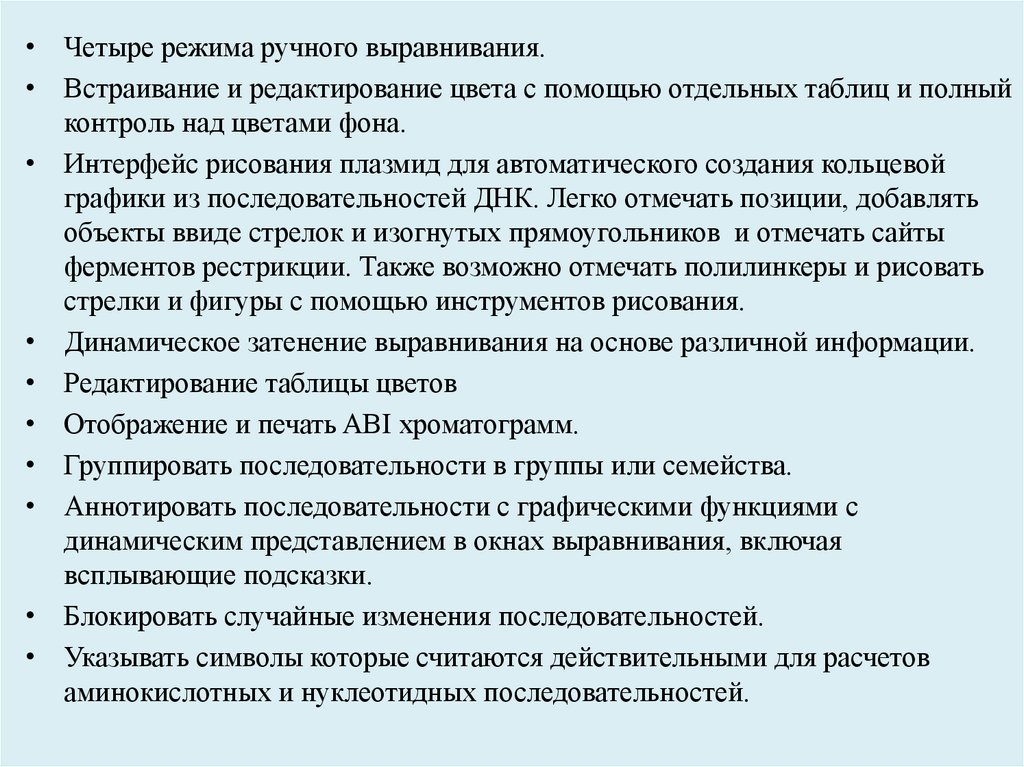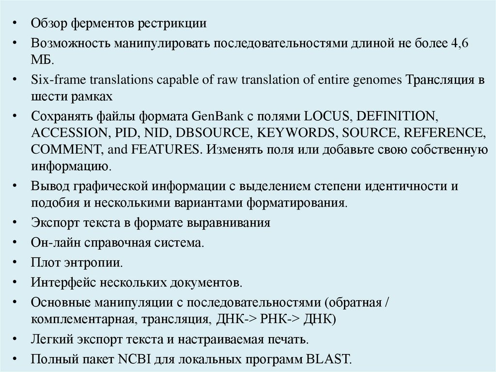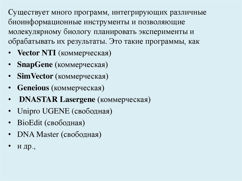 Существует много программ, интегрирующих различныебиоинформационные инструменты и позволяющие
