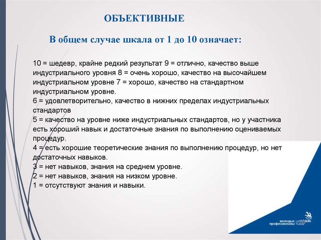 ОБЪЕКТИВНЫЕВ общем случае шкала от 1 до 10 означает: