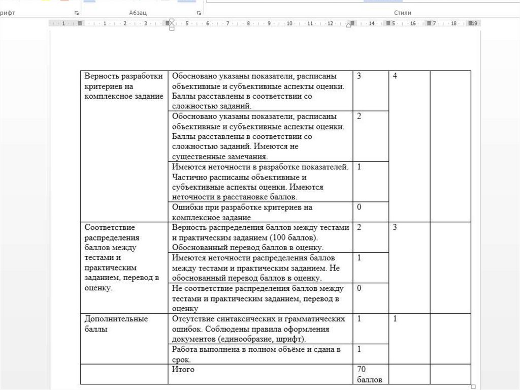 значение всех баллов по всем аспектам задания должно составлять 100 баллов (за