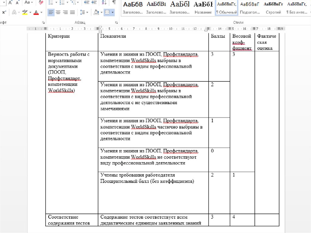 В качестве исходных данных для разработки контролируемыхпоказателей выступают Критерии оценки вида профессиональной