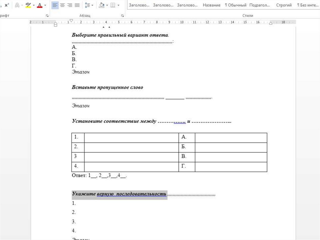 в тестовом задании на установление правильной