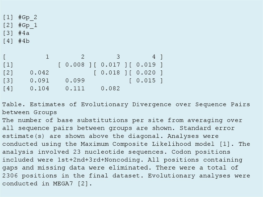 Table. Estimates of Evolutionary Divergence over Sequence Pairs