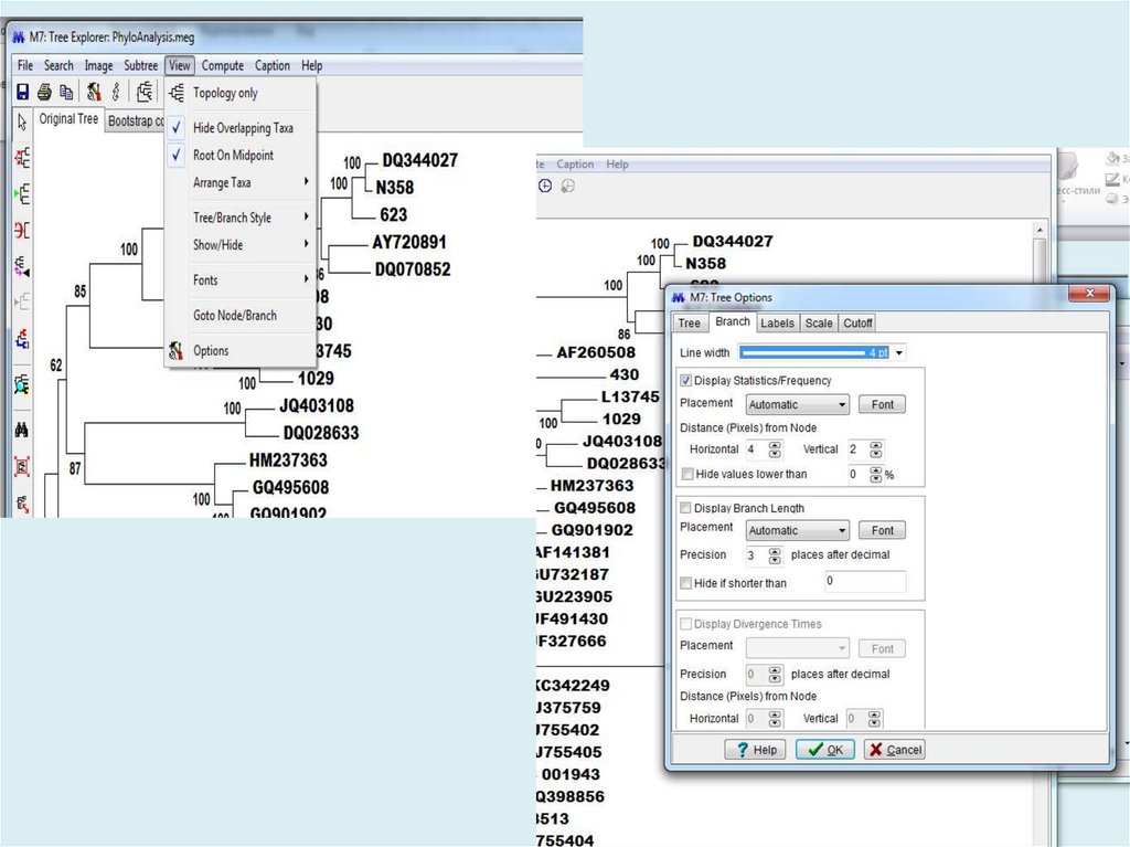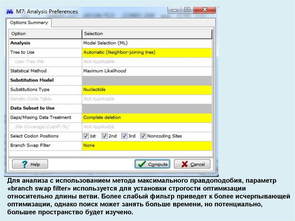 Для анализа с использованием метода максимального правдоподобия, параметр«branch swap filter» используется для установки строгости оптимизации