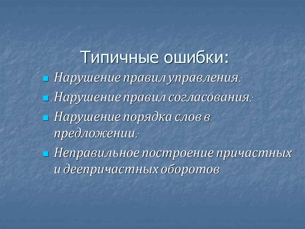 Типичные ошибки:Нарушение правил управления;