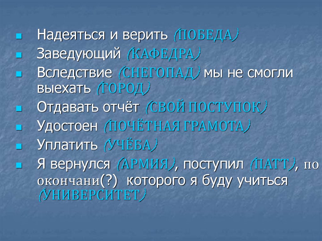 7. Употребление предлогов