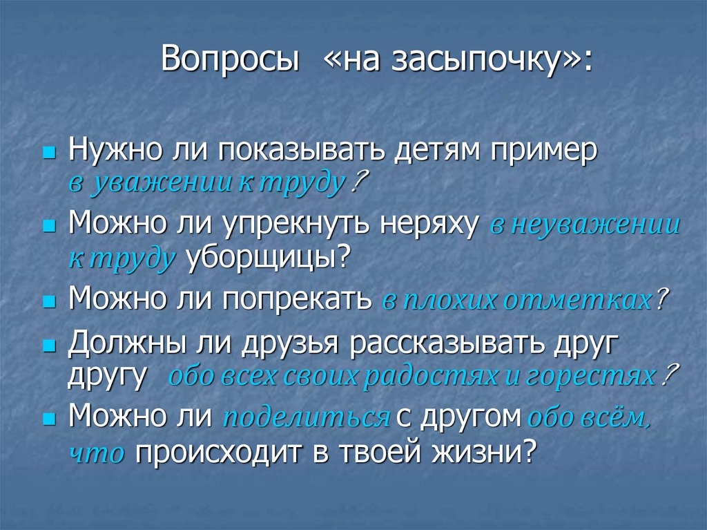 Вопросы «на засыпочку»:Нужно ли показывать детям пример