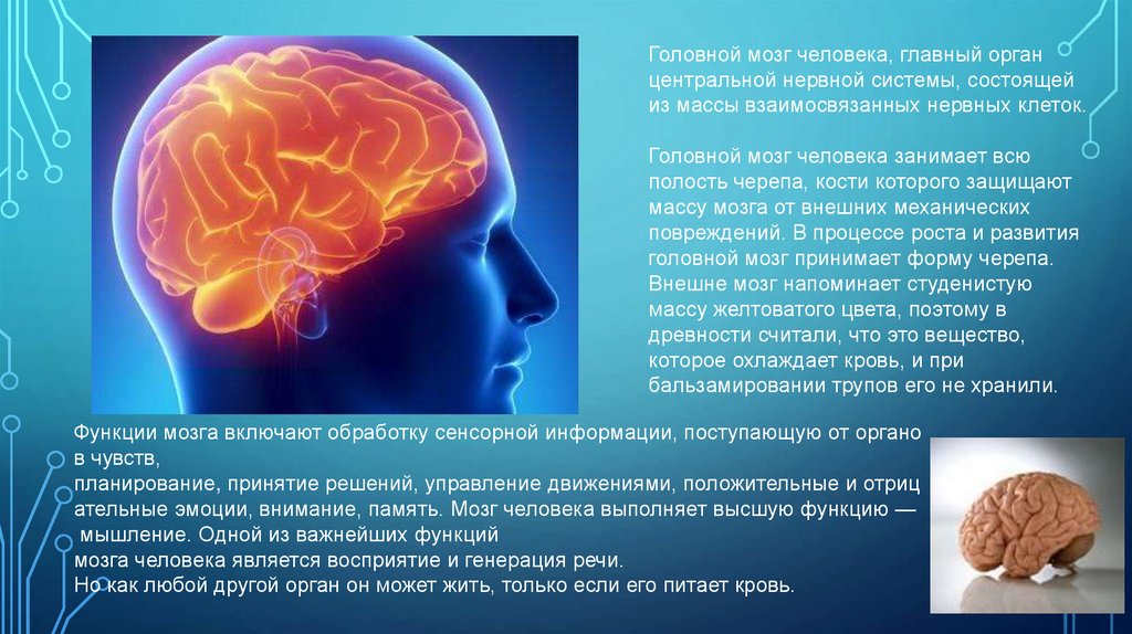 ательные эмоции, внимание, память. Мозг человека выполняет высшую функцию —