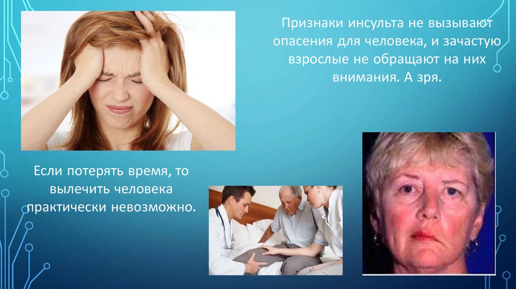 Признаки инсульта не вызываютопасения для человека, и зачастую