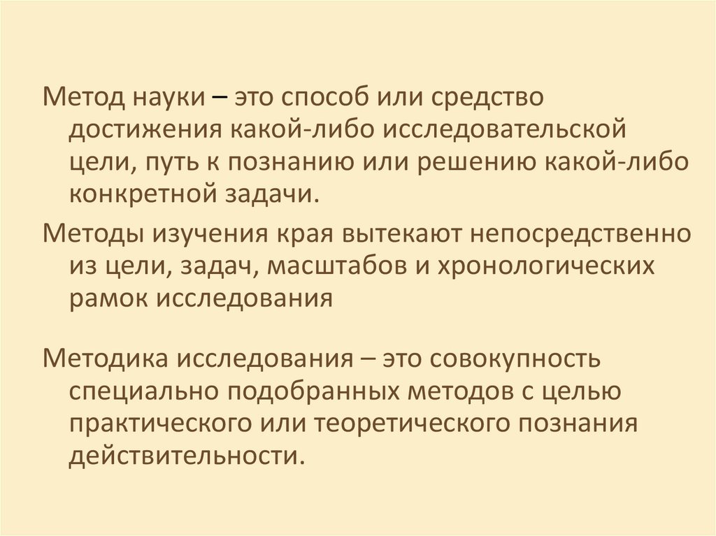 Метод науки – это способ или средстводостижения какой-либо исследовательской