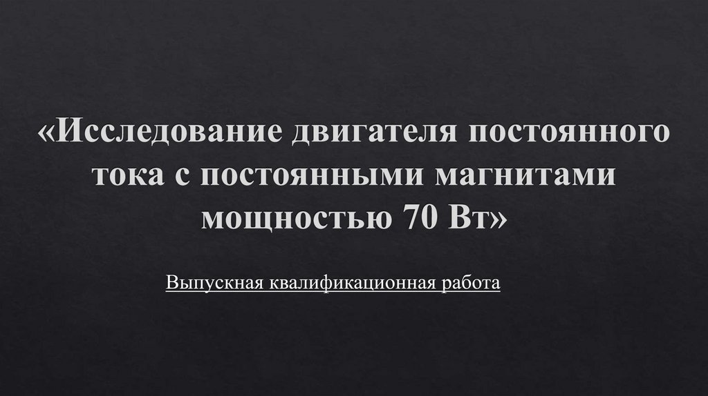 «Исследование двигателя постоянного тока с постоянными магнитами мощностью 70 Вт»
