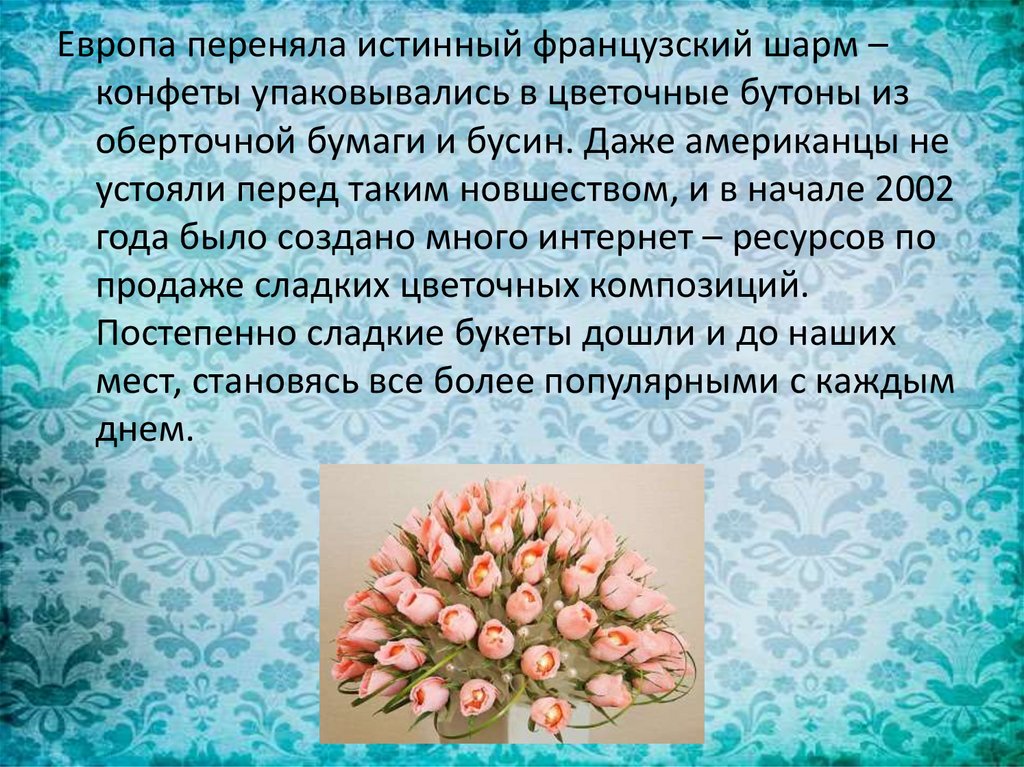 Европа переняла истинный французский шарм –конфеты упаковывались в цветочные бутоны из