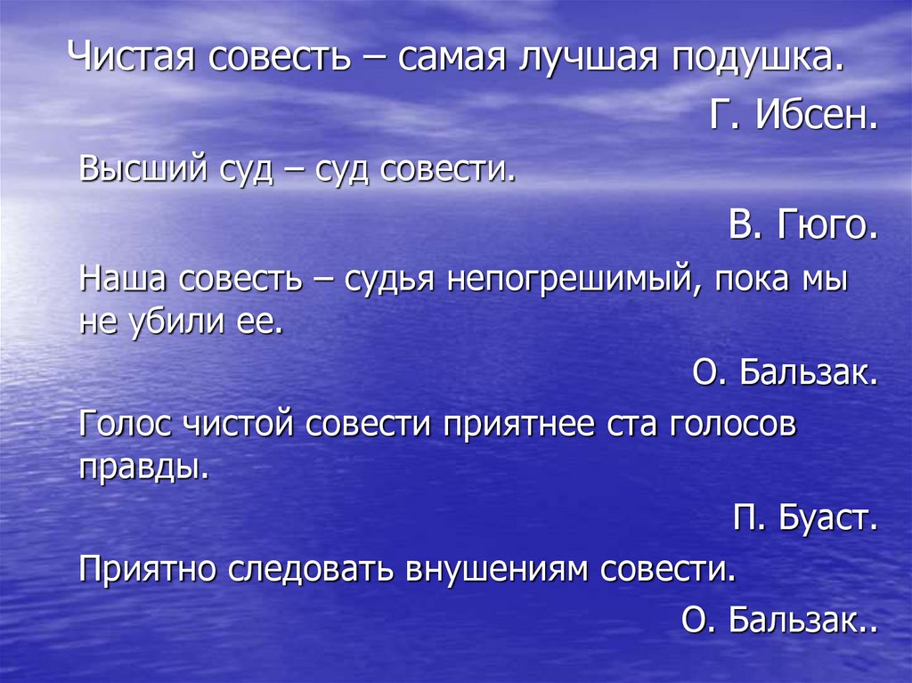 Чистая совесть – самая лучшая подушка.Г. Ибсен.