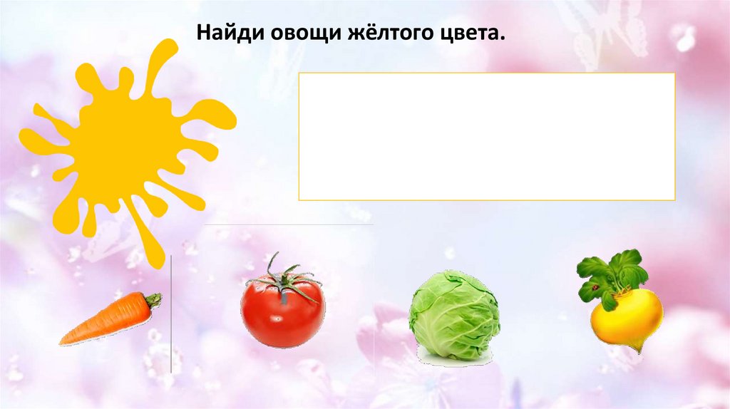 Найди овощи жёлтого цвета.