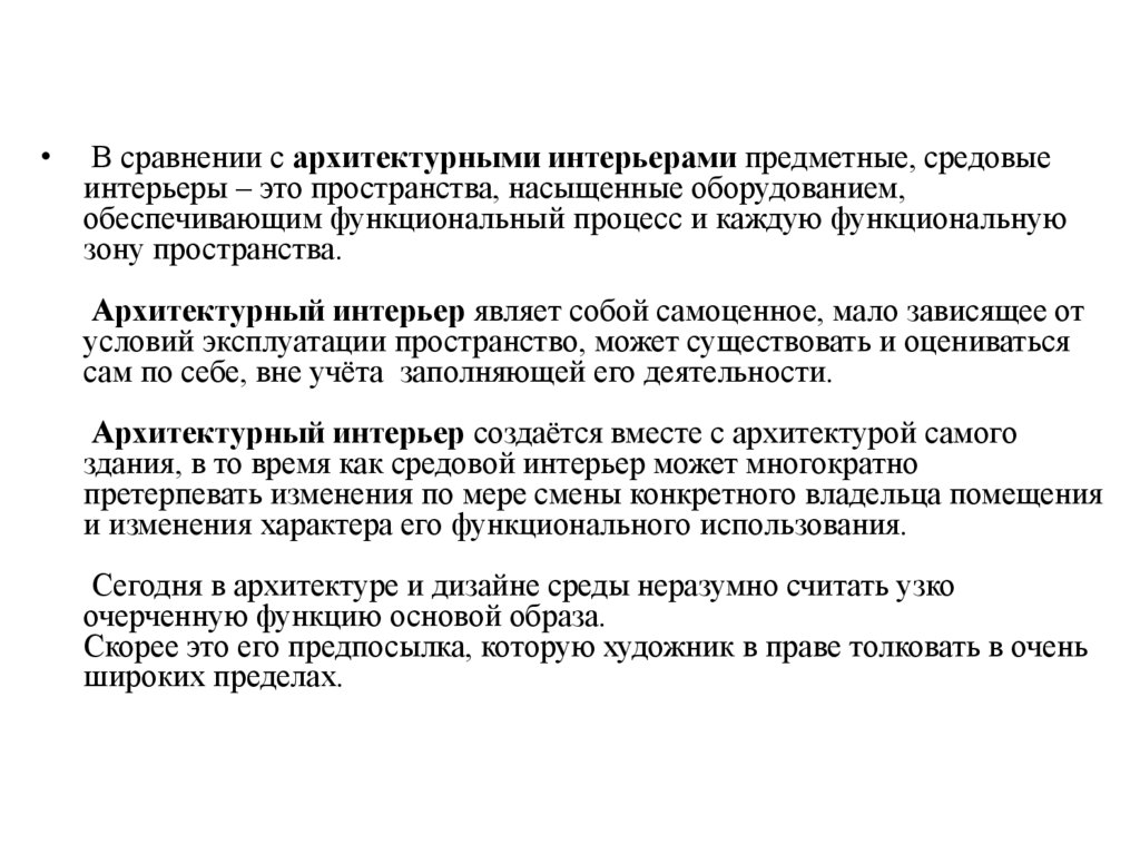 Сегодня в архитектуре и дизайне среды неразумно считать узко
