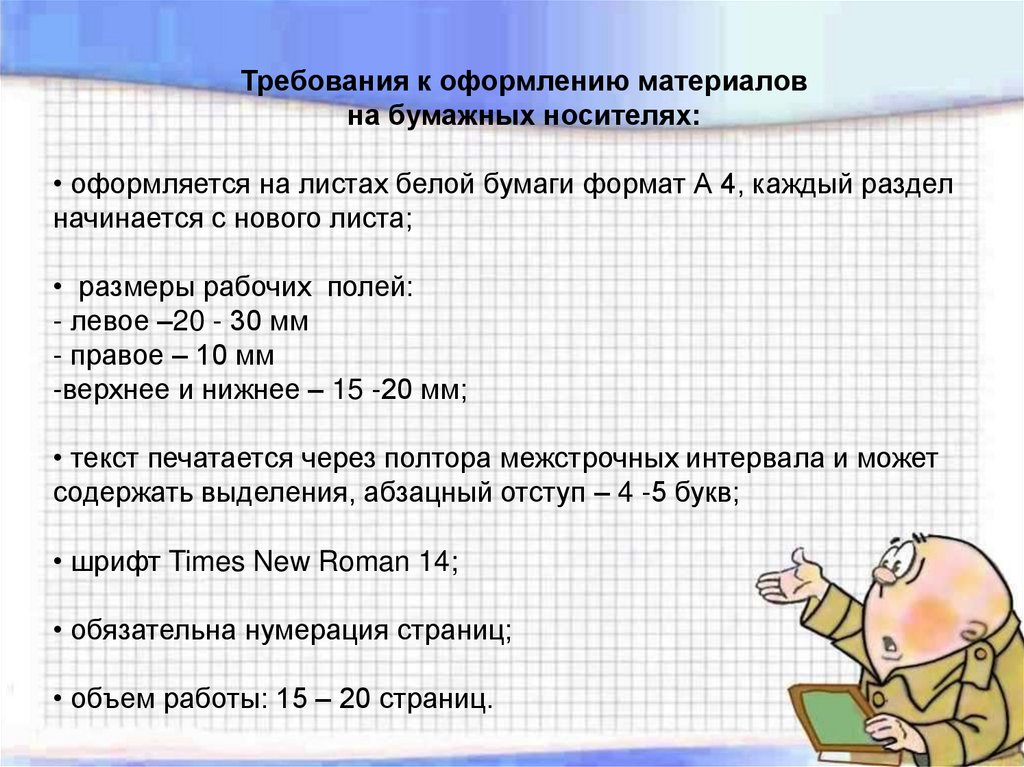 • оформляется на листах белой бумаги формат А 4, каждый раздел
