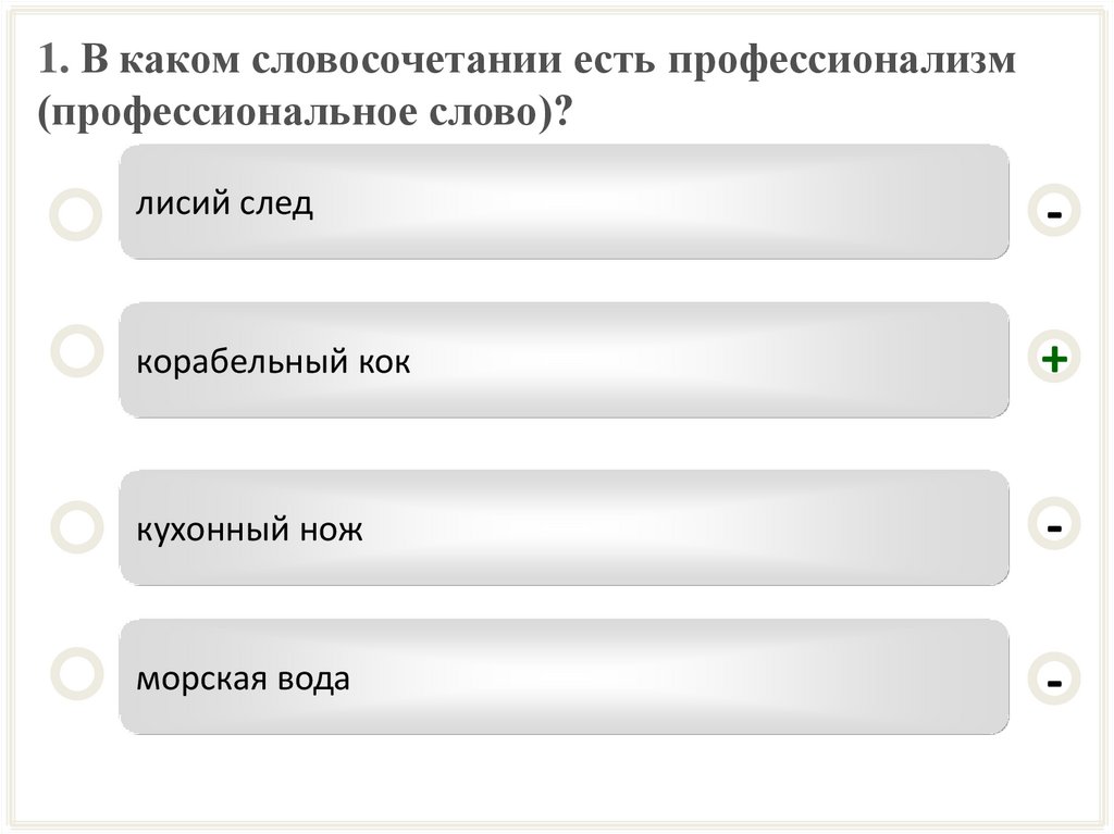 1. В каком словосочетании есть профессионализм(профессиональное слово)?