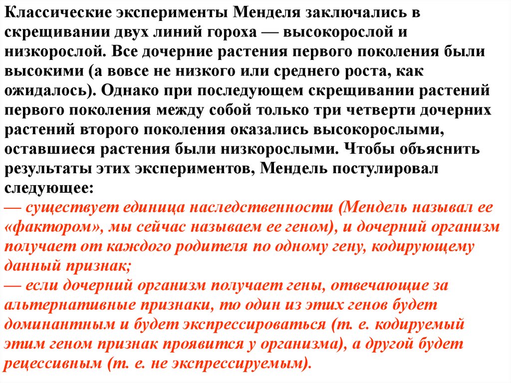 9. В чем заключается генетическая гипотеза Г. Менделя?