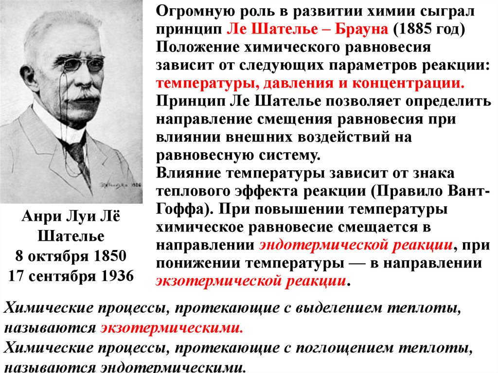 химического равновесия. Процессы, в которых роль