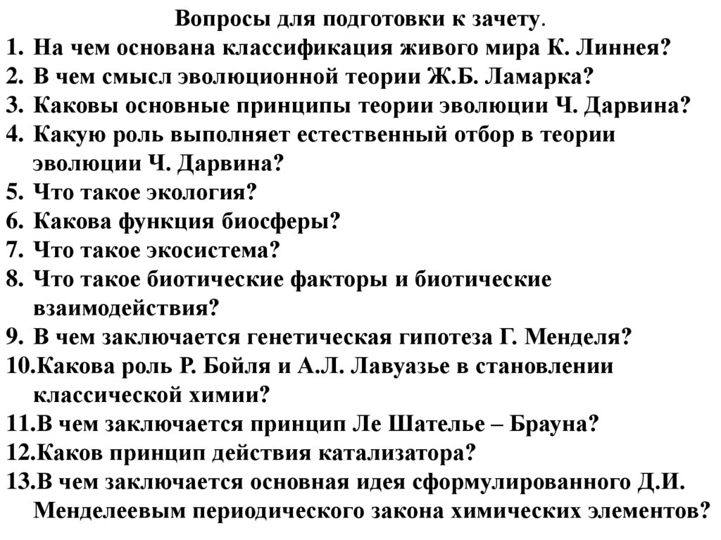 Вопросы для подготовки к зачету.1. На чем основана классификация живого мира К. Линнея?