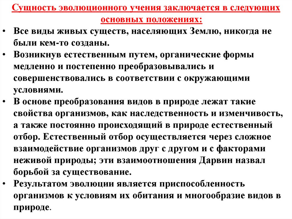 3. Каковы основные принципы теории эволюции Ч. Дарвина?