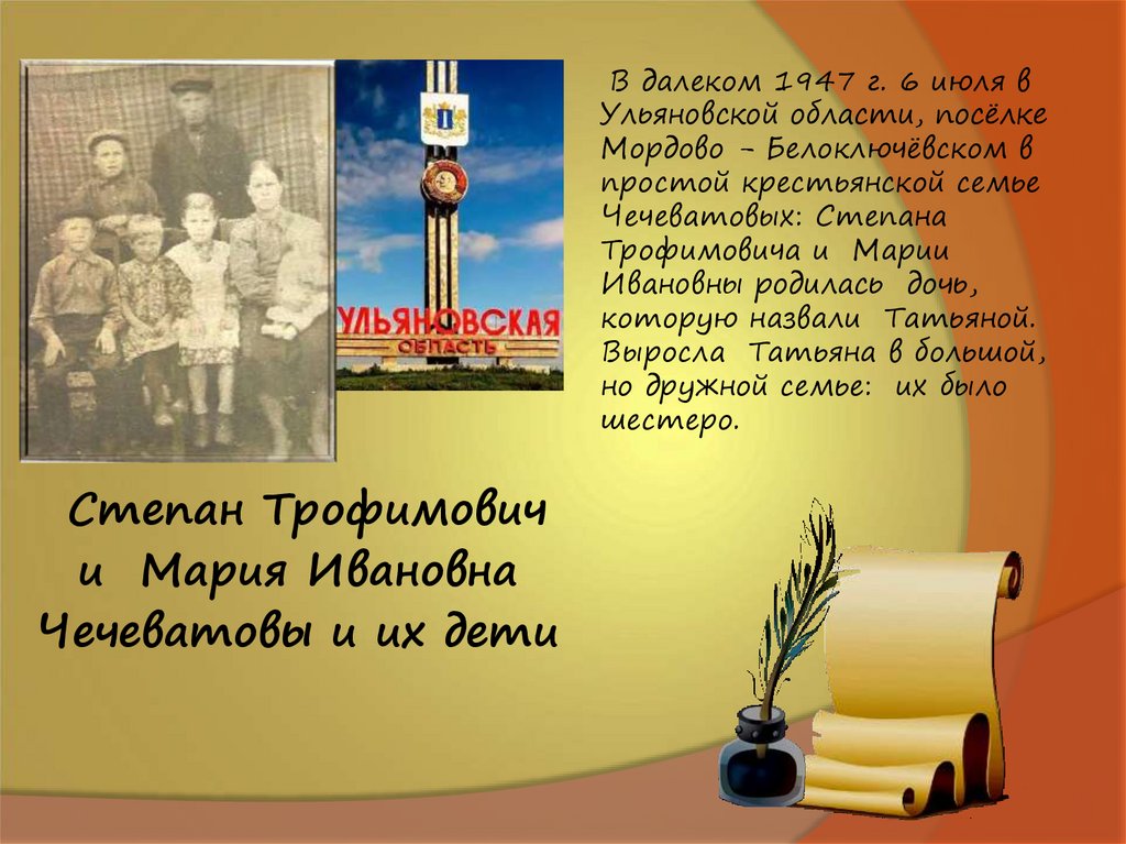 В далеком 1947 г. 6 июля вУльяновской области, посёлке