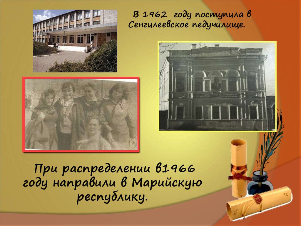 В 1962 году поступила вСенгилеевское педучилище.