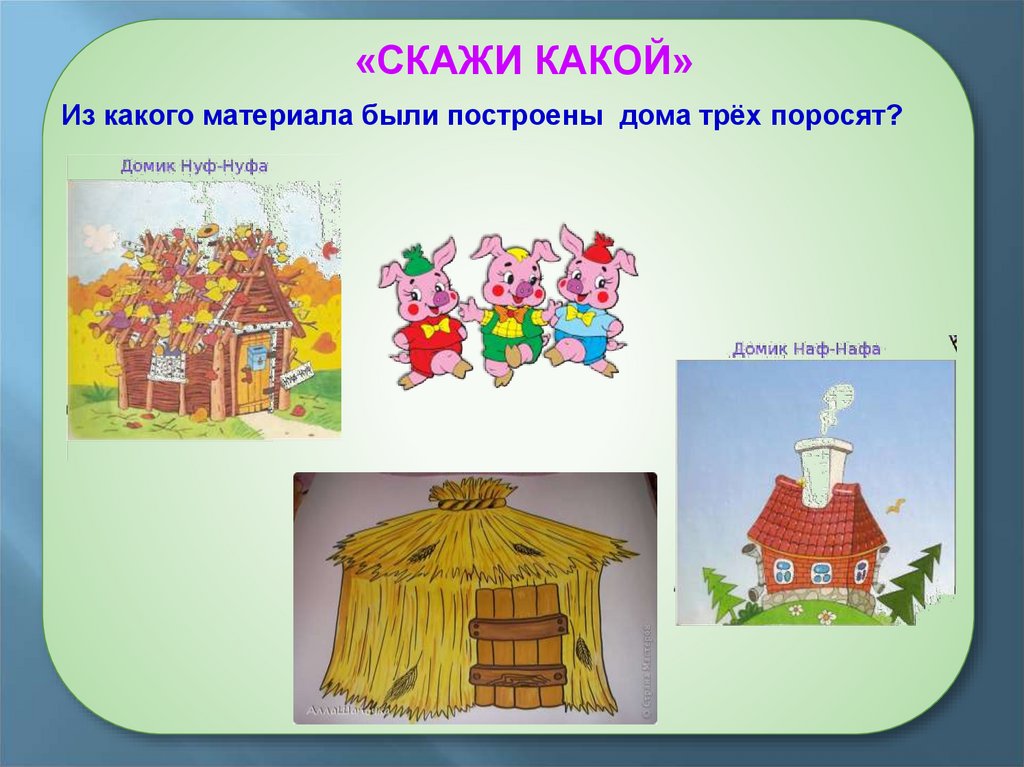 «СКАЖИ КАКОЙ»Из какого материала были построены дома трёх поросят?