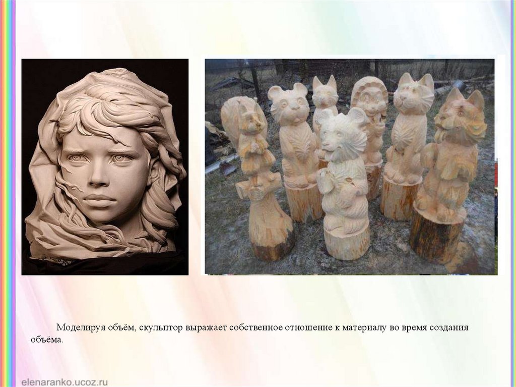Моделируя объём, скульптор выражает собственное отношение к материалу во время созданияобъёма.