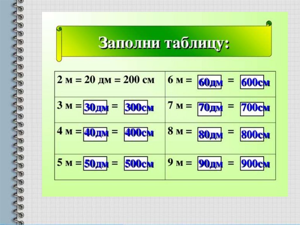 Метр. Таблица мер длины
