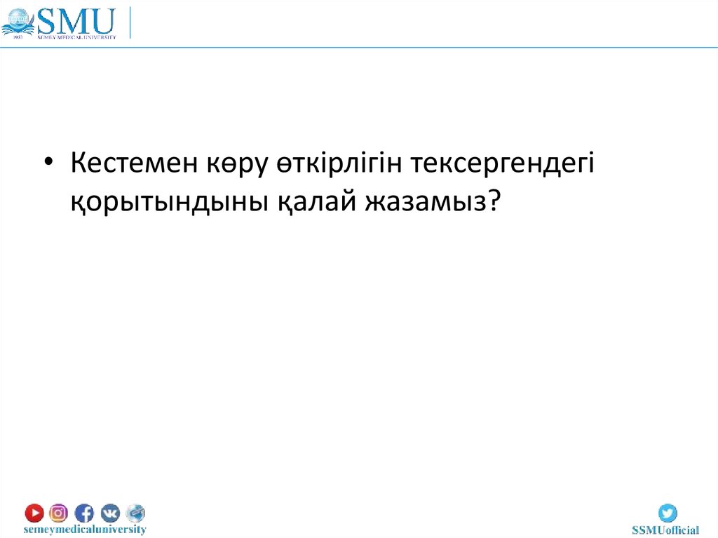 • Кестемен көру өткірлігін тексергендегіқорытындыны қалай жазамыз?