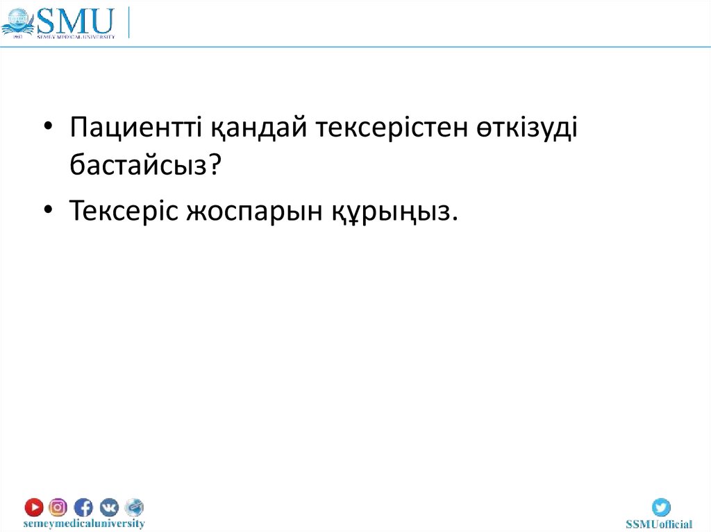 • Пациентті қандай тексерістен өткізудібастайсыз?
