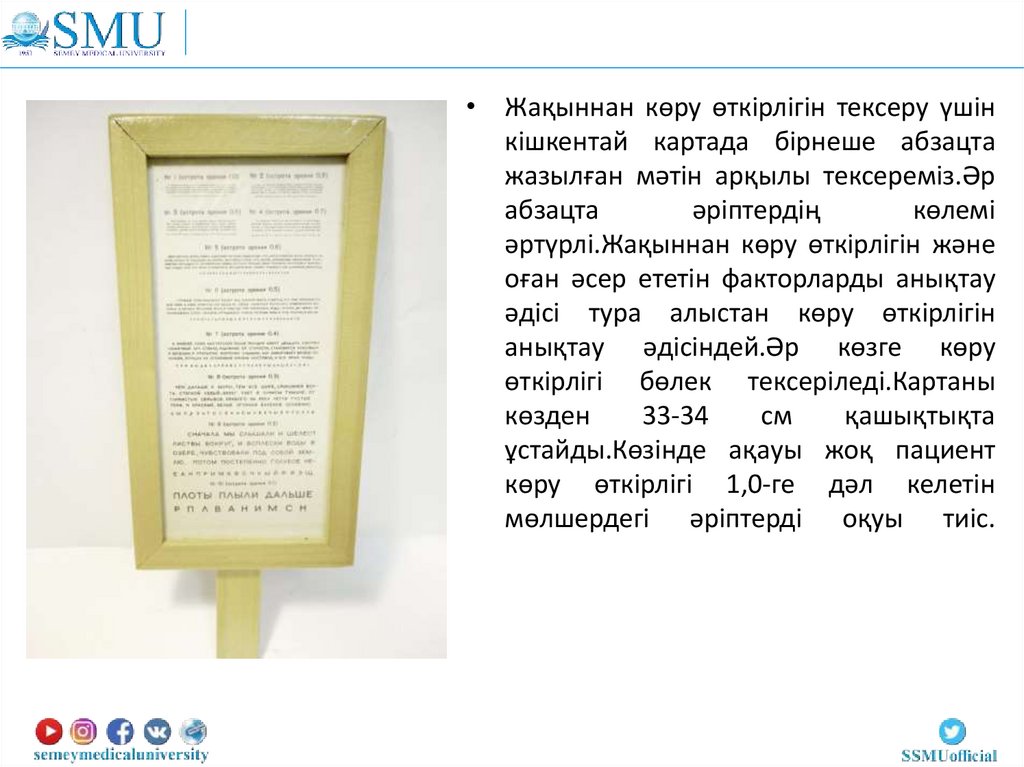 • Жақыннан көру өткірлігін тексеру үшінкішкентай картада бірнеше абзацта
