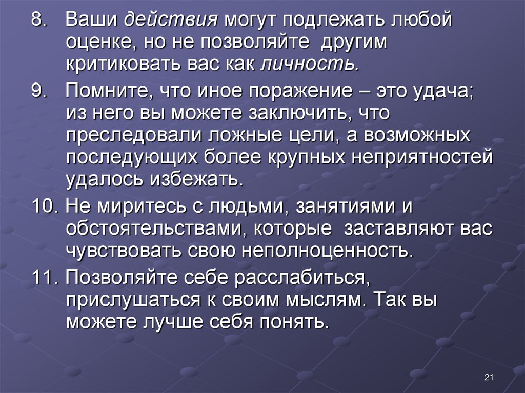 8. Ваши действия могут подлежать любойоценке, но не позволяйте другим
