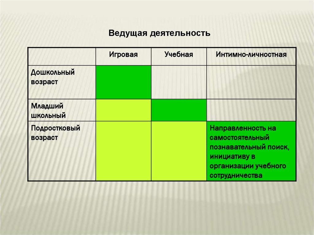 Индивидуальная самостоятельная деятельность ( к 12-13-ти годам)