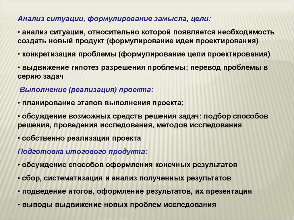 Анализ ситуации, формулирование замысла, цели:• анализ ситуации, относительно которой появляется необходимость