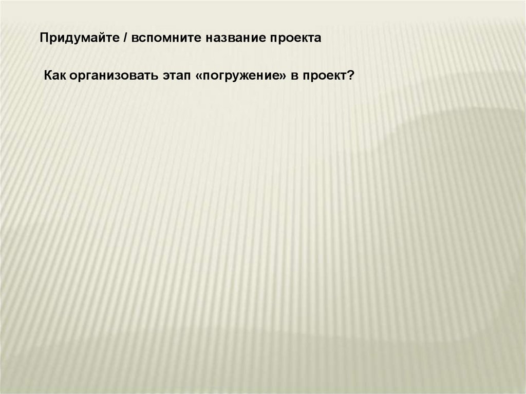 Придумайте / вспомните название проектаКак организовать этап «погружение» в проект?