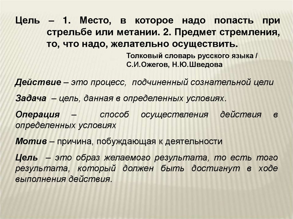 Цель – это образ желаемого результата, то есть того