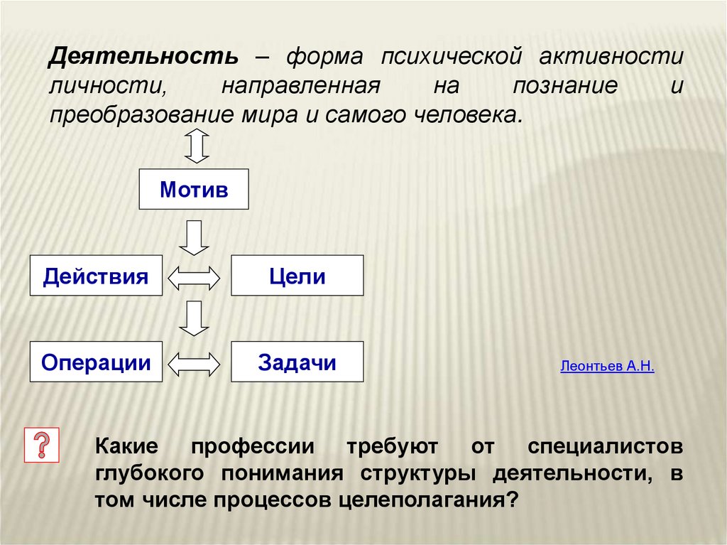 глубокого понимания структуры деятельности, в
