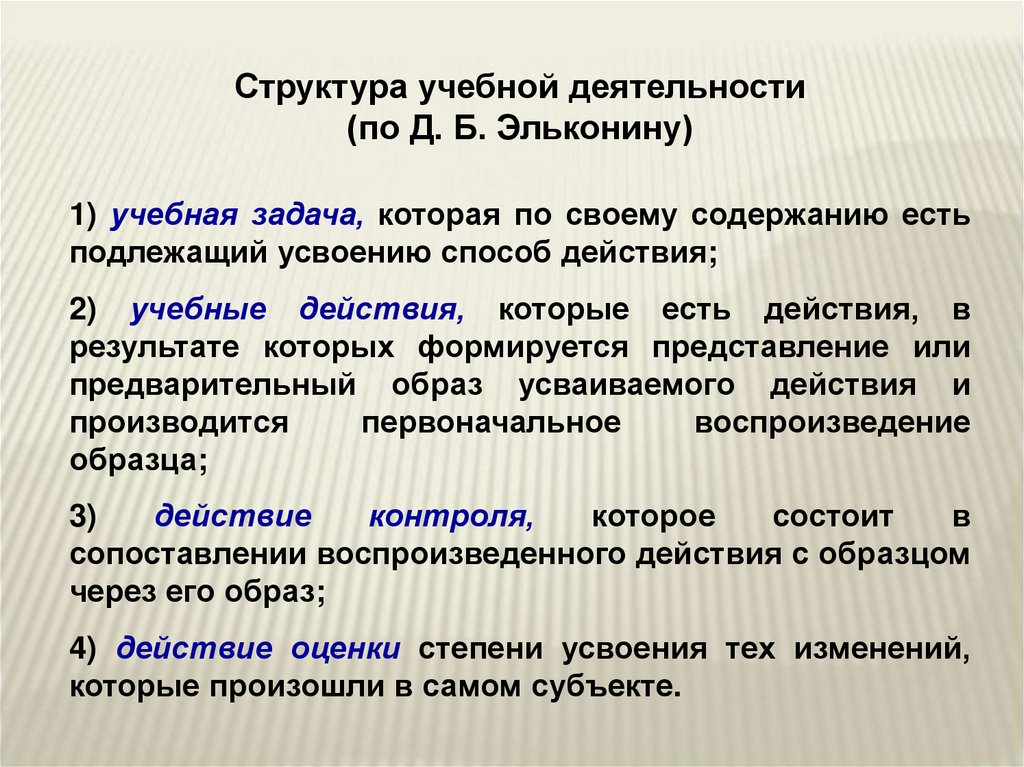 Структура учебной деятельности(по Д. Б. Эльконину)