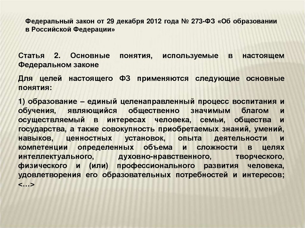 Федеральный закон от 29 декабря 2012 года № 273-ФЗ «Об образованиив Российской Федерации»